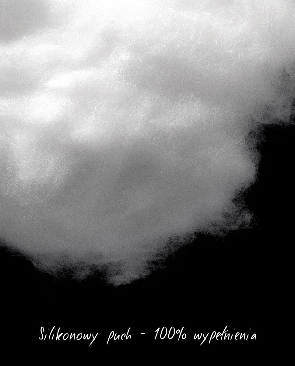 Niniejsza poduszka wypełniona jest w 100% Puchem Silikonowym. Jest to idealny materiał, jeżeli śpisz na miękkim lub średnio-twardym materacu. Ponad to Silikonowy Puch charakteryzuje się doskonałą zdolnością izolacji ciepła oraz pochłaniania wilgoci, więc już nigdy więcej nie obudzisz się z przyklejoną do poduszki buzią w gorącą noc.